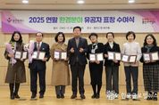 (한국글로벌뉴스 - 박소연 기자) 용인특례시는 지난달 30일 시청 비전홀에서 ‘2025년 연말 환경분야 유공 표창 수여식’을 열었다고 1일 밝혔다. 이 자리에서는 ▲생태계 보전 ▲환경교육 ▲수질보호 ▲탄소중립 ▲대기보전 ▲환경미화 ▲재활용가능자원 ▲화학물질 안전관리 등 8개 환경분야 유공자 58명에게 표창이 전달됐다. 행사에 참석한 이상일 시장은 각자의 분야에서 묵묵히 일하고 있는 수상자들에게 감사의 뜻을 전했다. 이상일 시장은 “지역 곳곳에서 활발하게 활동해 주시는 여러분 덕분에 더욱 친환경적이고 지속가능한 도시로 발전하고 있다”며 “여러분의 선한 영향력으로 더 많은 시민들이 환경에 관심을 가지고 동참해주시면 좋겠다”고 말했다.