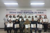 (한국글로벌뉴스 - 박소연 기자) 양평군은 26일 평생학습센터에서 ‘2026년 양평군 평생학습매니저 위촉식’을 성황리에 개최했다. 군은 이번 위촉식에서 평생학습매니저 역량 강화 연수를 이수하고 활동 신청서를 통해 지속적인 참여 의사를 밝힌 인원을 대상으로, △학습 여행 운영 참여 실적 △회의 참여도 △관련 사업 기여도 등 활동 전반의 성실성을 평생학습매니저 평가표에 따라 종합적으로 심사해 최종 17명의 평생학습매니저를 공식 위촉했다. 위촉된 평생학습매니저들은 앞으로 1년간 지역 평생학습 활성화를 위해 주민의 학습 참여를 독려하고, 평생교육 프로그램 기획·운영 지원, 학습자 상담 및 만족도 조사 등 현장 중심의 역할을 수행하게 된다. 이날 위촉식은 평생교육 관계자와 위촉자들이 참석한 가운데 △위촉장 수여 △향후 활동 계획 공유 △평생학습 발전 과제 논의 등의 순서로 진행됐다. 위촉된 매니저들은 온행복센터(읍·면·동 평생학습센터)와 우리 동네 학습공간을 중심으로 지역 맞춤형 학습 콘텐츠 개발·운영, 학습자 요구 조사, 학습 지원 체계 구축 등에 참여할 예정이다. 전진선 양평군수는 “평생학습매니저는 주민