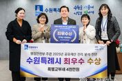 (한국글로벌뉴스 - 박소연 기자) 수원특례시가 행정안전부 주관 ‘2025년 공유재산 관리 분석·진단 평가’에서 최우수 지자체로 선정돼 특별교부세 4000만 원을 확보했다. 시상식은 22일 정부서울청사에서 열렸다. 행안부는 전국 243개 지방정부를 대상으로 ▲공유재산의 체계적 관리 여부 ▲유휴 공유재산 활용을 통한 재산 가치 제고 ▲사용료·변상금 부과 및 징수의 적정성 ▲재정 건전성 기여도 등 공유재산 관리·활용 실적을 분석·진단해 우수 지자체를 선정했다. 수원시는 2024년에 이어 2년 연속 최우수 지자체에 선정돼 2년간 총 8000만 원의 특별교부세를 확보했다. 수원시는 공유재산 사용료와 변상금의 정확한 부과, 철저한 체납 관리 등 건전한 재정 운영 기반을 마련한 점을 인정받았다. 또 공유재산 관리의 효율성과 투명성을 높이기 위해 체계적인 공유재산 관리 시스템을 구축했다. 부서별로 분산돼 있던 관리 체계는 총괄 운영 방식으로 전환했다. 공유재산의 누락을 방지하고 현행화를 지속해서 추진했고, 유휴 공유재산을 적극적으로 활용해 재산 가치를 높이고 세입을 확충했다. 이재준 수원
