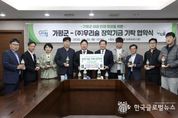 (한국글로벌뉴스 - 박소연 기자) 가평군은 ㈜우리술과 지역 인재양성을 위한 장학기금 기탁 재협약을 20일 체결했다고 밝혔다. 가평군청 소회의실에서 개최된 이날 협약식에는 서태원 가평군수, 박성기 ㈜우리술 대표 등 10명의 관계자가 참석했다. 가평군과 ㈜우리술의 장학기금 기탁 협약은 지난 2017년 2월 첫 협약을 맺은 이후 매년 계약을 연장해 왔다. 협약에 따라 ㈜우리술은 ‘가평잣生(생)막걸리’의 가평지역 판매량에 따라 병당 일정 금액을 적립해 반기별로 가평군에 장학기금으로 기탁하게 된다. 가평군도 ㈜우리술 ‘가평잣生막걸리’ 판매 증대를 위해 적극 협조하기로 했다. 이번 협약 기간은 2026년 9월 말까지이며, 지금까지 ㈜우리술이 가평군에 기탁한 금액은 총 1억100여만원에 달한다. 서태원 군수는 “㈜우리술과의 재협약 체결로 지역인재 양성을 위한 든든한 기반을 다질 수 있게 됐다”며 “가평지역 인재양성에 힘써 주시는 박성기 대표께 감사드리며, 더 많은 학생들의 학업을 지원할 수 있도록 장학기금을 내실있게 운용해 나가겠다”고 말했다.