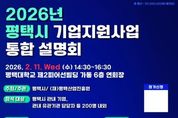 (한국글로벌뉴스 - 박소연 기자) 평택시가 평택산업진흥원과 함께 오는 2월 11일 평택대학교 제2피어선빌딩 6층 대강당에서 ‘평택 중소기업 지원사업 설명회’를 개최한다. 시에 따르면 이번 지원사업 설명회에서는 참석 기업을 대상으로 ▲자금지원 ▲사업화 및 기술 고도화 ▲수출판로개척 및 마케팅 지원 ▲근로 환경개선 등 다양한 분야의 중소기업 지원사업 및 일자리 등 상담 부스도 마련하여 종합적으로 안내할 예정이다. 이번 설명회에는 평택시를 비롯해 진흥원, 경기지방중소벤처기업청, 경기도경제과학진흥원, 경기신용보증재단, 중소기업진흥회 등 21개 지원 관계기관이 참여할 예정이다. 또한 설명회에 참석한 기업인들에게는 각종 지원사업 정보를 한눈에 확인할 수 있도록 중소기업 지원사업 안내 책자를 배부하는 한편, 참석하지 못한 기업을 위해 자료를 시 및 진흥원 누리집에도 게시한다. 특히 반도체산업 혁신 네트워크 조성, 제조 기업 인공지능 전환(AX) 지원 등 교육 사업을 통한 인력양성과 산․학․연․관 협력체계 구축과 더불어, 최근 화제가 되는 인공지능(AI)산업 관련 수요 기반 실증 지원사업을 통한 혁신 역량 강화 및 산업 경쟁