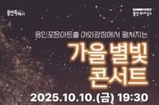 (한국글로벌뉴스 - 박소연 기자) 용인문화재단은 오는 10월 10일 오후 7시 30분, 새롭게 단장한 용인포은아트홀 야외광장에서 ‘가을 별빛 콘서트’를 개최한다. 이번 공연은 가을밤의 정취 속에서 시민들에게 특별한 추억을 선사하고, 용인의 대표 광장형 축제를 알리기 위해 마련됐다. ‘가을 별빛 콘서트’에는 가수 거미, 유리상자 이세준, 힙합 아티스트 행주·마린·블랙나인, 그리고 소프라노 정나리가 출연해 대중음악·클래식·힙합을 아우르는 다채로운 무대를 선보일 예정이다. 이번 공연은 무료로 진행되며, 사전 댓글 이벤트를 통한 예약석(현재 마감)과 공연 당일 현장 선착순 입장석으로 운영된다. 현장 참여자는 오후 5시부터 대기 후 오후 6시부터 선착순 입장할 수 있으며, 돗자리석과 계단석 등 다양한 방식으로 자유롭게 관람할 수 있다. 특히 이번 ‘가을 별빛 콘서트’는 시민 참여형 현장 이벤트도 마련됐다. 입장객 1,800명에게는 별 모양 무드등이 기념품으로 증정되며, 공연 전에는 중계 카메라 이벤트를 통해 용인포은아트홀 공연 티켓이 제공된다. 본 공연에 앞서 오후 4시부터 예술교육 매개자 ‘아트러너’가 운영하는 문화예