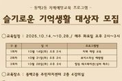 (한국글로벌뉴스 - 박소연 기자) 용인특례시 기흥구 동백2동은 10월 14일부터 28일까지 3주간 진행하는 치매 예방 프로그램 ‘슬기로운 기억생활’ 참여자를 모집한다고 22일 밝혔다. 프로그램은 10월 14일 1차 교육인 ‘알쏭달쏭한 치매예방교육’을 시작으로 10월 21일 2차 교육인 ‘보이스피싱 예방법’이 진행된다. 3차 교육은 10월 28일 ‘힐링 레크리에이션(실버체조)’가 이어진다. 교육은 동백2동 지역사회보장협의체의 분야별 전문가 위원들의 재능 기부로 운영되며, 어르신의 인지 기능 증진과 정서적 안정, 삶의 활력 증진을 위해 기획했다. 모집 대상은 지역내 65세 이상 주민 30명이다. 신청 방법은 동 행정복지센터 방문 또는 전화를 통해 선착순 모집한다. 동백2동 관계자는 “이번 프로그램은 어르신들이 건강하고 행복한 생활을 할 수 있도록 지역사회 구성원들이 함께 한다”며 “앞으로도 지역 맞춤형 복지사업을 발굴해 주민 삶의 질 향상에 노력할 것”이라고 말했다.