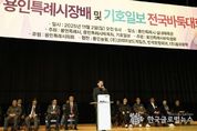 (한국글로벌뉴스 - 박소연 기자) 이상일 용인특례시장은 2일 시청 에이스홀에서 열린 ‘제7회 장애인 문화예술 경연대회’에 참석해 장애인 예술인들의 도전과 열정을 응원했다. 이번 대회는 문화네트워크 혜윰(대표 이하영)이 주최·주관하고, 용인특례시가 후원한 행사로 장애인 예술인들의 재능 발굴과 문화예술 활동 참여 기회를 확대하기 위해 마련됐다. 현장에는 지역 장애인 단체 관계자와 장애인 가족 등 300여명이 함께했다. 이상일 시장은 축사를 통해 “어려운 여건 속에서도 문화예술에 대한 열정과 창작의 꿈을 펼치고 있는 장애인 여러분께 존경과 감사의 뜻을 전한다”며 “이번 경연대회에서 그동안 연습을 통해 쌓은 기량을 마음껏 펼치시길 바란다”고 말했다. 이 시장은 “제 꿈 중의 하나는 장애와 비장애의 장벽을 허무는 일”이라며 “서로 공감하고 배려하는 사회, 장애가 장벽이 되지 않는 사회를 모든 시민들이 힘을 모아 함께 만들어 가면 좋겠다”고 했다. 이 시장은 “지난 7월 개관한 기흥국민체육센터 공공수영장에 장애인을 위한 가족 탈의실·샤워실·화장실을 설치했고, 앞으로 조성되는 모든 공공수영장에도 같은 시설을 마