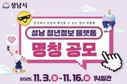 (한국글로벌뉴스 - 박소연 기자) 성남시는 오는 11월 16일까지 청년 정보 플랫폼 명칭을 공모한다. 해당 플랫폼은 성남시 청년정책과 지원사업, 청년 활동 공간, 행사 정보 등을 한곳에서 손쉽게 확인할 수 있는 온라인 통합 창구로, 내년 1월 서비스 개시 예정이다. 시는 이러한 성남 청년정보 플랫폼의 목적과 기능 등을 함축적으로 표현하는 명칭을 찾는다. 성남시민 누구나 참여할 수 있으며, 1명당 1개 명칭만 응모할 수 있다. 응모하려면 네이버폼 온라인을 접속해 제안 명칭(10자 이내)과 제안 사유(15자 이상) 적어 ‘제출 버튼’을 누르면 된다. 시는 서면 심사(11.17~21), 성남시청 홈페이지를 통한 시민 선호도 온라인 투표(11.24~12.4)를 거쳐 오는 12월 10일 당선작 5점을 선정한다. 선정자에게는 최우수(1명) 50만원, 우수(2명) 각 20만 원, 장려(2명) 각 5만원 등 총 100만원의 시상금을 성남사랑상품권으로 지급한다. 시 관계자는 “청년정책의 얼굴이 될 이름을 시민이 직접 정하는 뜻깊은 과정”이라면서 “청년이 공감하고 부르기 쉬운 이