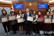 (한국글로벌뉴스 - 박소연 기자) 오산시의회는 27일 본회의장에서 ‘오산시의회 의장 표창 시상식’을 열고 지역사회 발전과 주민 소통에 앞장서 온 통장들을 표창했다. 수상자는 ▲중앙동 공혜란 22통장 ▲대원1동 신은숙 69통장 ▲대원2동 문영애 8통장 ▲남촌동 김정현 15통장 ▲신장1동 함영숙 18통장 ▲신장2동 손옥순 26통장 ▲세마동 이기춘 3통장 ▲초평동 이경옥 21통장 등 모두 8명이다. 이상복 의장은 인사말에서 “통장님들은 시민과 행정의 최전선에서 주민의 목소리를 가장 먼저 듣고, 지역의 크고 작은 문제를 함께 해결해 오신 분들”이라며 “오산시의 변화와 성장은 곳곳에서 묵묵히 땀 흘린 시민과 통장단의 노력이 있었기에 가능했다”고 감사의 뜻을 전했다. 이 의장은 “오늘 표창을 받은 여덟 분을 비롯해 늘 시민 곁에서 따뜻한 마음으로 봉사해 주신 모든 통장님께 깊이 감사드린다”며 “오산시의회는 시민의 뜻을 담는 그릇으로서 여러분의 목소리에 귀 기울이고 책임 있는 의정으로 보답하겠다”고 덧붙였다.