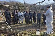 (한국글로벌뉴스 - 박소연 기자) 안성시농업기술센터는 관내 전문 전정팀을 대상으로 동계 과수화상병 확산 방지를 위한 현장 교육을 지난 13일 추진했다고 밝혔다. 이번 교육은 전정 작업이 많은 안성시의 특성을 고려해, 동계 전정 작업 시기에 맞춰 실시됐으며, 과수화상병 예방 교육과 작업 도구 소독 방법에 대한 현장 지도가 함께 진행됐다. 과수화상병은 검역병해충으로 지정된 세균병으로, 주로 사과·배 등 장미과 과수에 발생한다. 특히 전정 작업 시 병원균이 작업 도구를 통해 쉽게 전파될 수 있어, 가위·톱 등 작업 도구와 작업복을 수시로 소독하는 것이 무엇보다 중요하다. 작업 도구 소독은 70% 알코올 또는 유효염소 0.2%가 함유된 락스를 사용해, 도구를 90초 이상 담그거나 분무기로 골고루 살포하면 된다. 이병호 기술보급과장은 “과수화상병은 무엇보다 예방이 중요한 병해로 현장에서 실천가능한 예방 수칙을 지속적으로 홍보하겠다”고 말했다. 이어 “농가에서도 출입 관리와 작업 수칙 준수를 통해 화상병 확산 방지에 적극 협조해 주시길 바란다”고 당부했다.