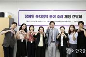 (한국글로벌뉴스 - 박소연 기자) 경기 시흥시의회 윤석경 의원이 9월 8일 대야동에 위치한 경기도시각장애인연합회 시흥시지회에서 시각장애인 복지정책 강화를 위한 조례 제정 간담회를 개최했다. 이번 간담회는 시각장애인의 점자 사용 권리 증진과 삶의 질 향상을 목표로 한 '시흥시 점자문화 진흥에 관한 조례', 그리고 시각장애인의 사회활동 참여 확대 및 볼 권리 보장을 위한 '시흥시 시각장애인을 위한 현장영상해설 활성화 지원 조례'의 세부 내용을 논의하기 위해 마련됐다. 간담회에는 윤석경 의원을 비롯해 시흥시 시각장애인협회 회장, 시흥시 장애인복지과 관계자 등 총 10여 명이 참석했다. 두 조례의 주요 내용은 다음과 같다. '시흥시 점자문화 진흥에 관한 조례'는 ▲공공건축물 등에서의 점자 사용 ▲점자의 보급과 지원 ▲점자 전문인력의 양성 및 활용 등을 핵심으로 하고, '시흥시 시각장애인을 위한 현장영상해설 활성화 지원 조례'는 관광·문화·예술·체육 행사 등에서의 ▲현장영상해설 지원 ▲협력체계 구축 등을 주요 내용으로 담았다. 윤석경 의원은 “조례 제정을 통해 시각장애인을 위한 시설, 환경에 대한 체계적인