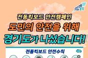 (한국글로벌뉴스 - 박소연 기자) 경기도는 11월 한 달간 경기도의회, 경기도교육청, 경기 남ㆍ북부경찰청, 경기도교통연수원, 한국도로교통공단, 시군 등 유관기관과 함께 전동킥보드 안전문화 합동캠페인을 추진한다. 도는 전동킥보드 주요 사고 다발지역 및 유동인구 밀집 지역을 중심으로 유관기관 및 시민단체와 연계해 전동킥보드 필수 안전수칙이 담긴 홍보물을 배부하고 경찰과 협력해 현장 계도 활동도 병행한다. 시군별 전광판, 현수막 등 지역 홍보 매체를 적극 활용해 전동킥보드 안전수칙 홍보도 적극 확대할 계획이다. 특히 전동킥보드 사고 발생의 주요 원인인 면허 자격, 이용 연령, 안전모 착용, 동승 금지 의무 등을 집중적으로 안내하고, 교육청과 협력해 청소년 대상 교육도 강화할 방침이다. 윤태완 경기도 광역교통정책과장은 “이번 안전캠페인은 전동킥보드 안전이용 문화가 안착되는 계기가 될 것”이라며 “도에서는 캠페인 기간이 끝나더라도, 경찰청·교육청 등 유관기관과 지속 협력해 전동킥보드 안전사고 예방에 총력을 다할 계획이다”고 말했다. 현재 경기도 내 운영 중인 공유 전동킥보드는 6만 7,866대로