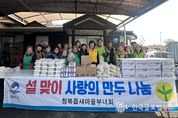 (한국글로벌뉴스 - 박소연 기자) 평택시 청북읍 새마을부녀회와 청북읍 지역사회보장협의체는 지난 11일부터 12일까지 이틀에 걸쳐 설 명절을 앞두고 어려운 이웃 54가구를 대상으로 설맞이 만두 나눔 봉사활동을 실시했다. 이날 새마을부녀회원들은 정성을 담아 만든 만두와 가래떡, 부식 등을 준비하고, 지역사회보장협의체는 라면 54박스를 준비해 홀몸노인, 장애인, 한부모가족 등 관내 취약계층인 이웃들에게 전달하며 명절 인사를 나눴다. 노미화 부녀회장은 “명절이 다가오면 더 외로울 수 있는 이웃들에게 작은 위로가 됐으면 하는 마음으로 준비했다. 정성껏 만든 만두를 맛있게 드시고 설 명절을 조금이나마 따뜻하게 보내시길 바란다”라고 말했다. 이준규 민간위원장은 “앞으로도 주변의 어려운 이웃들에게 온정을 나눌 수 있도록 다방면으로 노력하고, 민간 단체간에 협력을 통해 나눔 활동을 이어가겠다”라고 전했다. 이에 이철은 청북읍장은 “매년 명절마다 앞장서서 이웃들을 위해 봉사하시는 새마을부녀회원들의 노고에 감사드린다. 앞으로도 청북읍에 소외되는 이웃이 없도록 더욱 세심히 살피겠다”라고 전했다.