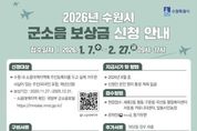 (한국글로벌뉴스 - 박소연 기자) 수원특례시는 2월 27일까지 ‘2026년 군소음 피해보상금’ 신청을 받는다. 신청 대상은 2020년 11월 27일부터 2025년 12월 31일까지 수원시 소음대책지역에 주민등록을 두고 실제 거주한 주민이다(외국인 포함). 소음대책지역은 국방부 군소음포털에서 확인할 수 있다. 2월 27일까지 신청해야 한다. 정부24 홈페이지, 현장 방문, 등기 우편 중 한 가지 방법을 선택해 신청하면 된다. 현장 신청은 세류2동·평동·구운동·곡선동 행정복지센터와 서둔동 커뮤니티센터(권선구 서호로 138), 탑동시민농장(권선구 서둔로 155)에서 평일 오전 9시부터 오후 5시까지 할 수 있다. 1월 13일까지는 출생 연도 끝자리 기준 5부제를 적용한다. 월요일은 1·6, 화요일 2·7, 수요일 3·8, 목요일 4·9, 금요일 5·0 해당자가 신청할 수 있다. 온라인 신청은 정부24 홈페이지에서 ‘군소음’을 검색해서 할 수 있다. 소급 보상을 원하는 주민은 과거 연도별로 각각 추가 신청해야 한다. 등기 우편 신청은 ‘수원시 팔달구 효원로 241, 수원시청 공항이