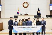 (한국글로벌뉴스 - 박소연 기자) 용인특례시의회는 30일 의장실에서 원주시의회 원주특례시추진특별위원회의 방문을 받고 특례시 추진 및 운영 사례를 공유하는 시간을 가졌다고 밝혔다. 이번 방문은 특례시 추진을 준비 중인 원주시의회가 용인특례시의회의 제도 운영 경험과 의회 조직·권한 구조를 벤치마킹하기 위해 마련됐다. 용인특례시의회에서는 유진선 의장을 비롯해 이윤미 의회운영위원장, 김희영·이진규·기주옥 의원이 참석했으며, 용인특례시 자치분권과 관계자들도 함께했다. 원주시의회 원주특례시추진특별위원회에서는 손준기 위원장과 최미옥·문정환 의원 등 관계자들이 참석했다. 이날 일정은 상호 소개를 시작으로 ▲특례시 운영 현황 및 제도적 기반에 대한 설명 ▲특례시 추진 과정과 의회 역할 공유 ▲의회 시설 견학 순으로 진행됐다. 특히, 참석자들은 ‘지방자치법’과 ‘지방자치분권 및 지역균형발전에 관한 특별법’ 등 특례시 관련 법령 체계, 인구 100만 이상 대도시의 행·재정 수요 증가에 따른 특례시 도입 배경과 필요성, ‘특례시의회 사무기구 구성과 정책지원 전문인력 운영 사례 등에 대해 심도 있는 의견을 나눴다. &nb
