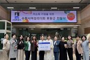 (한국글로벌뉴스 - 박소연 기자) 수원시여성리더회가 16일 수원시청 본관 1층에서 저소득가정을 위한 후원금 300만 원을 수원시에 전달했다. 후원금은 형편이 어려운 가정에 지원할 예정이다. 전달식에는 김은주 수원시 여성가족국장, 김수민 수원시여성리더회 총회장 등이 참석했다. 김수민 총회장은 “우리 여성리더회 임원진과 회원들의 따뜻한 마음을 모았다”며 “형편이 어려운 가정에 그 마음이 잘 전달되길 바란다”고 말했다. 수원시여성리더회는 수원시 양성평등기금 사업으로 운영되는 ‘수원시 여성지도자대학’ 수료생들로 구성된 단체다. 여성의 권익 증진과 복지 향상, 지역사회 발전을 목표로 2004년 12월 출범했다. 수료생 1240명이 활동 중이며, 매년 저소득가정 후원금과 물품 기부, 한부모가정 지원, 지역 복지시설 봉사활동 등 다양한 사회공헌 활동을 하고 있다.