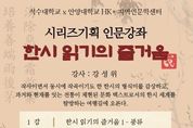 (한국글로벌뉴스 - 박소연 기자) 안양시 석수도서관은 안양대학교 HK+사업단 지역인문학센터와 함께 시리즈기획 인문강좌의 일환인‘한시 읽기의 즐거움’ 강좌를 오는 11월 7일부터 12월 5일까지 운영한다고 17일 밝혔다. 이번 강좌를 통해 수강생들은 작사(作詞)와 작곡(作曲)의 특징을 동시에 지닌 한시(漢詩)의 형식미를 감상하고, 과거와 현재를 잇는 전통이 체현된 문화 텍스트로서의 한시 세계를 탐방한다. 석수도서관 관계자는 “석수도서관과 안양대학교 지역인문학센터가 협업하여 진행하는 이번 시리즈기획 인문강좌를 통해 시민들이 한시의 매력적인 세계를 깊이 탐구하고, 한시를 읽는 즐거움을 알 수 있길 바란다”고 밝혔다. 서울대학교 중국어문화연구소 책임연구원이자 한시 칼럼니스트 강성위가 진행하는 이번 강의는 10월 21일 10시부터 안양시도서관 홈페이지에서 접수하면 된다.