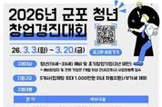 (한국글로벌뉴스 - 박소연 기자) 군포산업진흥원은 지역 내 유망 청년 창업가를 발굴하고 혁신 아이디어의 성공적인 사업화를 지원하기 위해 2026년 군포 청년 창업경진대회 지원사업 참가자를 2026년 3월 3일부터 3월 20일까지 모집한다고 밝혔다. 이번 사업은 창의적인 아이디어와 기술력을 보유한 청년 예비창업자 및 초기 창업기업을 대상으로 우수 창업 아이템을 발굴하고, 단계별 맞춤 지원을 통해 안정적인 시장 진입과 지속 가능한 성장을 돕기 위해 마련됐다. 특히 경진대회를 통해 선발된 우수팀에게는 최대 1천만 원의 사업화 지원금과 전문가 멘토링 등 실질적인 성장 지원 프로그램이 제공될 예정이다. 또한 향후 창업보육센터 입주 신청 시 우대 혜택을 부여해 후속 성장까지 연계 지원할 계획이다. 군포산업진흥원은 이번 사업을 통해 청년 창업 활성화 기반을 더욱 강화하고, 지역 내 창업 생태계 선순환 구조를 구축해 나간다는 방침이다. 아울러 우수 창업기업이 관내에 안정적으로 정착해 지속적으로 성장할 수 있도록 맞춤형 지원을 확대해 나갈 예정이다. 유병직 원장은 “청년 창업은 지역 경제의 미래 성장 동력”이라며