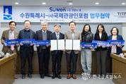 (한국글로벌뉴스 - 박소연 기자) 수원특례시와 (사)국제관광인포럼(TITF)이 ‘글로벌 관광도시 수원’을 만들어 가기 위해 협력한다. 수원시와 (사)국제관광인포럼은 2일 시청 상황실에서 업무협약을 체결하고, ‘제5회 세계관광산업콘퍼런스 개최(6월 5일~6일)’와 ‘2026~2027 수원 방문의 해’의 성공적인 추진을 위해 협력하기로 했다. 협약식에는 이재준 수원특례시장과 국제관광인포럼 김정배 회장, 신연성 부회장, 금기형 사무총장, 신중목 후원회장, 연정아 이사 등이 참석했다. 양 기관은 협약에 따라 ‘제5회 세계관광산업콘퍼런스 공동 개최·운영’, ‘수원시 관광자원 홍보·국제 관광시장 확대 등을 협력하기로 했다. 수원시는 이번 협약을 계기로 국제 관광 네트워크를 확대하고, 수원의 관광자원과 도시 경쟁력을 세계에 알려 ‘1500만 관광객 시대’를 열 계획이다. (사)국제관광인포럼은 2013년 문화체육관광부 인가를 받아 설립된 관광 분야 전문 단체다. 국내·외 관광 전문인 간 교류 협력을 바탕으로 세계 관광산업 발전과 지속가능관광 육성을 지원하고 있다. 김정배 국제관광인포럼 회