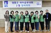 (한국글로벌뉴스 - 박소연 기자) 영통구는 지난 3일 영통구청 상황실에서 새마을부녀회 2월 월례회의를 개최했다. 이날 회의에서는 ▲시·구정 홍보 ▲새마을부녀회 활성화 방안 ▲2026년도 새마을부녀회 활동 계획 공유(사랑의 반찬 나눔, 어려운 이웃 김장 담가주기) ▲2026년도 예산 사용의 투명성 및 정확성 제고 등을 주요 안건으로 논의했다. 오정숙 영통구 새마을부녀회장은 “이번 월례회의를 통해 회원 간 소통을 강화하고 향후 활동 방향을 공유하는 뜻깊은 시간이 됐다”며 “지역사회에 기여할 수 있는 다양한 사업을 지속적으로 추진해 나가겠다”고 말했다. 장수석 영통구청장은 “새마을부녀회는 지역 공동체의 중심 역할을 해오고 있다”며 “앞으로도 행정과 긴밀히 협력해 주민이 체감할 수 있는 다양한 활동이 추진될 수 있도록 적극 지원하겠다”고 밝혔다.
