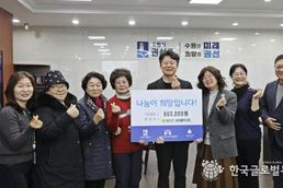 (한국글로벌뉴스 - 박소연 기자) 수원시 권선구 새마을부녀회는 지난 11일 권선구청에서‘불우이웃 돕기 기부금 전달식’을 개최하며 올해 마지막 나눔의 장을 열었다. 권선구 새마을부녀회는 한 해 동안 사랑의 반찬 나눔, 김장 나눔 등 다양한 봉사 활동과 나눔 사업을 꾸준히 전개해 왔으며, 이번에 전달한 기부금은 먹거리 부스와 바자회 운영 등의 자체적인 자선 활동을 통해 마련된 것이다. 전달식에는 각 동 부녀회장들도 함께 참석해 기부의 의미를 더했다. 김종석 권선구청장은 “지역 공동체를 위해 꾸준히 봉사해 주시는 권선구 새마을부녀회 여러분들께 깊이 감사드린다”며 “오늘의 기부가 어려운 이웃들에게 큰 힘이 될 것”이라고 말했다. 정현미 권선구 새마을부녀회장은 “작은 정성이지만 지역의 어려운 이웃들에게 보탬이 되길 바란다”며 “앞으로도 꾸준한 나눔 활동을 이어가겠다”라고 전했다.