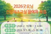 (한국글로벌뉴스 - 박소연 기자) 평택시 안중보건지소에서는 지역 주민의 건강증진과 규칙적인 신체활동 실천을 위해 오는 19일부터 ‘굿모닝! 건강체조교실’참여자를 모집한다. 이번 프로그램은 오는 3월 5일부터 5월 28일까지 운영되며, 매주 화요일과 목요일 오전 10시 안중읍 현화근린공원에서 진행한다. ‘굿모닝! 건강체조교실’은 남녀노소 누구나 부담 없이 참여할 수 있는 생활체육 프로그램으로, 스트레칭과 유산소 체조, 에어로빅 동작을 활용한 체조 등으로 구성돼 있다. 특히 야외 공간에서 운영되는 프로그램 특성을 살려 일상 속 자연스러운 운동 실천을 유도하고, 참여자의 체력 향상과 건강관리 습관 형성에 도움을 줄 것으로 기대된다. 참여를 희망하는 주민은 전화 또는 안중보건지소 방문을 통해 신청할 수 있다. 안중보건지소 관계자는 “앞으로도 주민들이 생활권 가까운 곳에서 손쉽게 참여할 수 있는 다양한 신체활동 프로그램을 지속적으로 확대해 건강한 지역사회 조성에 힘쓰겠다”고 밝혔다.
