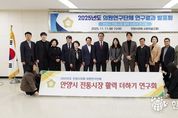 (한국글로벌뉴스 - 박소연 기자) 안양시의회 의원연구단체 ‘안양시 전통시장 활력 더하기 연구회(대표의원 강익수)’는 11일 시의회 소회의실에서 최종보고회를 열고, 지난 8개월간의 연구활동을 마무리했다. 이번 연구회에는 강익수 대표의원을 비롯해 김보영, 음경택, 김정중, 채진기, 이동훈, 곽동윤 의원이 참여했으며, 세대공감소통연구소(책임연구원 송은옥)와 함께 안양시 내 전통시장의 경쟁력 강화를 위한 다양한 활성화 방안을 연구했다. 연구회는 지난 4월 착수보고회를 시작으로, 관내 5개 전통시장 상인회의 의견을 수렴하고 세 차례의 현장 벤치마킹을 실시했다. 이를 통해 각 시장의 특화 전략과 타 지역의 성공 사례를 조사·분석하고, 시장별 여건과 입지 환경을 고려한 실질적인 활성화 전략을 마련했다. 강익수 대표의원은 “짧지 않은 기간 동안 현장을 직접 발로 뛰며 얻은 결과를 토대로, 안양시 전통시장이 시민과 관광객이 다시 찾는 매력적인 공간으로 거듭나길 기대한다”고 밝혔다. 안양시의회는 앞으로도 지역경제의 근간인 전통시장의 활성화와 상인들의 실질적 지원을 위해 다양한 정책 연구와 의정 활동을 이어갈 계획이다