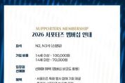 (한국글로벌뉴스 - 박지형 기자) 김천상무 공식 서포터즈 ‘수사불패’가 멤버십 회원을 모집한다. 김천상무 공식 서포터즈 수사불패가 1월 28일부터 시즌 종료 시까지 ‘2026 서포터즈 멤버십’ 회원을 모집한다. 멤버십은 선착순 200명 한정으로 운영되며, 가입비는 14세 이상 10만 원, 14세 미만 7만 원이다. 이번 서포터즈 멤버십은 ‘역대급 혜택’으로 구성됐다. 먼저 멤버십 회원은 김천상무 홈경기 시 선수들과 가장 가까운 곳에서 응원의 열기를 느낄 수 있는 서포터즈석(N2, N3구역) 입장권을 정액 7천 원에 구매할 수 있다. 동시에 가입회원 본인에 한해 서포터즈석 선예매가 가능하다. 다양한 이벤트 혜택도 있다. 서포터즈 특화 행사 참여 기회가 제공되며, 홈경기 서포터즈석 티켓 지원, 원정경기 티켓 일부 지원 혜택도 받을 수 있다. 멤버십 패키지 구성 또한 풍성하다. 서포터즈를 형상화한 멤버십 실물카드와 랜야드가 기본으로 제공되며, 14세 이상 가입자는 구단 공식 의류 후원사 켈미 바람막이를 받을 수 있다. 14세 미만