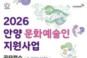 (한국글로벌뉴스 - 박소연 기자) 안양문화예술재단은 지역 예술인의 창작활동을 지원하고 문화예술 진흥을 도모하기 위한 ‘2026년 안양 문화예술인 지원사업’ 희망자를 오는 16일 17시까지 공개 모집한다. 이번 공모는 안양에서 활동하는 예술인과 예술단체를 대상으로 하며, 안정적인 창작환경 조성과 더불어 경기도 내 우수 예술인의 안양 유입을 통해 시민들에게 보다 풍성한 문화예술 향유 기회를 제공하는 것을 목적으로 한다. 총 사업 규모는 3억 2,630만원이며, 이 중 지원금은 2억 7,400만원이다. 특히 올해는 ‘정산 간소화’ 제도를 시범 도입하여 예술인의 행정부담을 줄이고 창작활동에 더욱 집중할 수 있는 환경을 조성할 계획이다. 재단 관계자는 “이번 지원사업을 통해 지역 예술생태계가 활성화되고, 시민들의 문화향유 기회가 확대됨으로써, 안양이 보다 풍요로운 문화도시로 도약하길 기대한다”고 밝혔다.