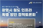 (한국글로벌뉴스 - 박소연 기자) 광명시는 미래 철도도시로 도약하기 위한 핵심 전략을 논의한다. 시는 오는 15일 오후 3시 시청 대회의실에서 ‘광명시 철도 인프라 확충방안 정책 토론회’를 개최한다. 이번 토론회는 신천–하안–신림선 추진 현황을 비롯해 광명시의 철도 접근성 진단, 철도 음영지역 개선 방향, KTX광명역의 미래 역할 등 광명시 철도 정책의 주요 과제를 종합적으로 점검하기 위해 마련했다. 토론회에서는 세 건의 주제 발제가 이어진다. 먼저 박승원 광명시장이 신천–하안–신림선 등 주요 사업의 추진 현황과 향후 계획을 설명하고, 이어 전교석 아주대 연구교수가 광명시 철도 음영지역 진단과 철도망 발전 구상을 제시한다. 마지막으로 나희승 전 코레일 사장은 유라시아 평화철도 구상 속에서 KTX광명역이 나아가야 할 미래적 역할을 발제한다. 발제 후에는 유정훈 대한교통학회장(아주대 교수)을 좌장으로, 각 분야 전문가가 참여하는 패널 토론과 질의응답이 이어진다. 시민들은 별도의 신청 없이 현장을 방문해 발제와 토론을 청취하고 질의할 수 있다. 시는 이번 토론회에서 제시된 전문가
