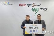 (한국글로벌뉴스 - 박소연 기자) 가평군 가평읍 주민 김성극 씨가 취약계층 이웃돕기 성금으로 매월 5만 원을 가평읍 행정복지센터에 정기기탁하기로 했다. 지난 20일 행정복지센터에 방문한 김성극 씨는 “직장이 서울이었지만 가평이 좋아서 이곳을 떠나지 않고 퇴직 후에도 살고 있다”며 “우리 지역 내 취약계층 아동에게 도움을 주고 싶어서 고민하다가 작은 성금이지만 매월 정기 기탁을 하게 됐다”고 전했다. 장석조 가평읍장은 “김성극님의 따뜻한 관심이 우리 지역 취약계층 이웃에게 전달될 수 있도록 가평읍 행정복지센터도 더욱 노력할 것이며 소중한 정기 기탁 진심으로 감사드린다”고 화답했다.