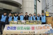 (한국글로벌뉴스 - 박소연 기자) 사단법인 천지회가 지난 4일, 수원시 장안구 정자2동을 비롯하여 파장동, 정자2동, 정자3동, 동광원에 설 맞이 쌀 나눔 봉사를 진행했다. 사단법인 천지회는 30여년 동안 수원지역의 어려운 이웃을 위해 사랑의 쌀 나누기, 결손가정 및 청소년지원, 다문화 가정의 지원사업 등 다양한 나눔 활동을 실천하고 있다. 이번 나눔에서는 설을 맞이하여 준비한 쌀 400kg, 라면 40박스를 장안구 내 4개 동과 아동복지시설 동광원에 전달했다. 임동봉 천지회 회장은 “장안구 지역에서 30년이 넘게 이웃들과 함께하며 사랑을 나누고 있다. 이번 설에도 함께 마음을 나누고파 준비한 먹거리가 이웃들에게 조금이나마 도움이 되면 좋겠다”며 “앞으로도 지역사회를 위한 활동을 지속하겠다”고 전했다. 한편, 정자2동 행정복지센터는 이날 전달받은 쌀과 라면을 복지사각지대 위기가구에 전달할 예정이다.