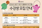 (한국글로벌뉴스 - 박소연 기자) 용인특례시 처인구는 지역 주민의 건강 증진과 여가 활성화를 위해 3월 3일부터 ‘2026년 처인구 생활체육 프로그램’을 운영한다. 어린이부터 성인까지 누구나 즐길 수 있는 생활체육 프로그램은 처인구 지역 9개 장소에서 6개 종목, 14개 강좌가 진행된다. 성인을 위한 생활체조(에어로빅, 줌바댄스)와 배드민턴 강좌는 3월부터 운영한다. 생활체조는 사전 신청 없이 현장에서 참여할 수 있고, 배드민턴은 사전 접수한 수강생을 대상으로 진행한다. 어린이를 위한 유소년 프로그램은 ▲음악줄넘기 ▲인라인스케이트 ▲풋살 ▲농구 등 4개 종목이며, 4월부터 상반기 수업을 시작한다. 모든 강좌는 무료로 운영되며 유소년 프로그램은 3월 16일부터 처인구 누리집에서 선착순 모집한다. 구 관계자는 “많은 시민이 체육활동을 통해 건강 증진과 일상 속 활기를 느낄 수 있도록 다양하고 알찬 프로그램을 마련해 운영하겠다”고 말했다.