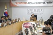 (한국글로벌뉴스 - 박소연 기자) 용인특례시는 9일 시청 영상회의실에서 ‘용인비전 2040 미래도시 발전 전략 연구’ 최종보고회를 개최했다. 시는 2025년 3월부터 용인시정연구원과 함께 15년 뒤 용인의 미래상과 이를 실현하기 위한 전략적 방향을 담은 프로젝트를 추진해 왔다. 시는 ‘용인비전 2040 미래도시 발전 전략 연구’를 통해 ▲도시‧교통 ▲산업‧경제 ▲문화‧관광 ▲환경‧안전 ▲행정‧복지‧교육 등 5개 분야, 21개 부문별 전략, 57개 사업을 도출했다. 용인은 삼성전자와 SK하이닉스가 합쳐 1000조 원을 투자하는 초대형 반도체 프로젝트가 진행되면서 첨단기업도시로 급부상하고 있다. 앵커기업 뿐만 아니라 램리서치코리아, 도쿄일렉트론코리아, ASML코리아 등 반도체 소·부·장 기업이 용인에 자리를 잡고 있다. 이에 시는 글로벌 반도체 프로젝트에 맞춰 정주환경을 조성하고, 반도체 전략 기업 R&D 인프라를 지원할 방침이다. 이와 함께 교육, 문화 등 생활 인프라 확충도 본격화한다. 시는 그간 연구의 전문성과 객관성을 높이기 위해 총 5차례 전문가 포럼을 열었으며, 시민