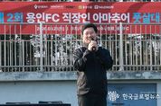 (한국글로벌뉴스 - 박지형 기자) 이상일 용인특례시장은 21일 축구도시 용인서 열린 직장인 풋살대회와 용인시박물관 기획전 개막식, FK2 풋살리그 경기장을 잇달아 찾았다. 이날 오전 기흥레스피아에서는 ‘2026 용인FC와 함께하는 직장인 풋살대회’가 열려 지역 내 직장인 12개 팀, 약 200명이 참가해 열띤 경기를 펼쳤다. 대회 현장을 찾아 참가팀을 응원한 이상일 시장은 이어 용인시박물관에서 열린 2026년 기획전 ‘함께 킥오프, 우리들의 축구도시 용인’ 개막식에도 참석했다. 이번 전시는 시민구단 용인FC 창단을 기념해 한국 축구의 태동기와 용인축구센터를 거쳐 용인FC로 이어지는 지역 축구 발전사를 조명하기 위해 마련됐다. 용인축구센터와 용인FC, 서포터즈 문화를 함께 소개하며 ‘시민구단의 주체는 시민’이라는 의미를 담아 축구를 통해 형성된 지역 공동체의 가치를 전달하는 데 초점을 맞췄다. 개막식에는 이상일 시장과 용인FC 선수단, 서포터즈, 시민 등 150여 명이 참석했다. 이 시장과 용인FC 선수단은 전시장을 찾은 시민들과 함께 전시를 관람하며 가족 단위 관람객과 자연