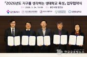(한국글로벌뉴스 - 박소연 기자) 용인특례시는 24일 시청 접견실에서 용인교육지원청을 비롯해 3개 학교와 ‘지구를 생각하는 생태학교 육성사업’을 위한 협약을 맺었다. 이날 협약식에는 조영민 교육장과 올해 생태학교로 선정된 대지고 유동철 교장, 효자초 정계환 교장, 도현초 연승희 교장, 담당 교사들이 참석했다. 이들 기관은 협약에 따라 ▲학교별 맞춤형 생태교육 운영 지원 ▲교과·교육과정과 연계한 생태교육 프로그램 개발·자문 ▲생태학교 육성사업 성과평가 등을 위해 협력하기로 했다. 올해 4년 차를 맞이한 ‘지구를 생각하는 생태학교’ 사업은 전국 지자체 중 최초로 환경교육 전문 인력을 학교 현장에 배치, 이론 교육을 넘어 실천 중심의 생태전환교육을 하는 용인시의 핵심 환경교육 사업이다. 시는 2023년부터 해마다 공모를 통해 지역 내 학교를 선정해 왔다. 올해 선정된 3개 학교를 포함해 총 12개교가 생태학교 사업에 참여하고 있다. 올해 기준 용인 지역은 초·중·고 343학급, 학생 9149명이 생태교육에 참여하면서 현장 중심의 체계적인 환경교육으로 높은 평가를 받고 있다. 시는