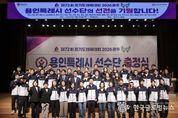 (한국글로벌뉴스 - 박소연 기자) 용인특례시는 30일 시청 에이스홀에서 ‘제72회 경기도체육대회 2026 광주’에 참가하는 선수단 출정식을 개최했다. 제72회 경기도체육대회는 4월 16일부터 18일까지 3일간 광주시 일원에서 열리며, 용인특례시는 육상, 축구, 태권도 등 26개 종목에 선수 312명이 출전한다. 출정식에는 이상일 시장을 비롯해 체육회 임원과 종목단체장, 선수단 등 약 300명이 참석했다. 이상일 시장은 격려사를 통해 “그동안 대회를 위해 열심히 준비해 온 선수단 여러분들 정말 자랑스럽다”며 “이번 대회에서 갈고닦은 실력을 마음껏 발휘해 원하는 성과 거두시길 바라고, 모두가 한 단계 더 성장하는 계기가 되길 바란다”고 말했다. 이 시장은 “선수들이 더 좋은 환경에서 훈련하고 기량을 펼칠 수 있도록 지원을 확대하기 위해 노력하고 있다”며 “앞으로도 여러분과 함께 힘과 지혜를 모아 오늘보다 더 나은 내일을 만들어가겠다”고 했다. 이 시장은 출정식 이후 집무실에서 직장운동경기부 감독과 종목단체 회장단을 대상으로 간담회를 열어 선수단을 격려하고, 현장의 애로사항과 건의사항을 청취