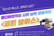 (한국글로벌뉴스 - 박소연 기자) 군포시 중앙도서관은 시민이 직접 참여하는 낭독 콘텐츠 제작을 통해 공공 문화콘텐츠를 확산하고, 시민의 창작 경험을 지원하기 위해 미디어창작실 시민 낭독 프로젝트 '골든 보이스'를 운영한다. '골든 보이스'는 시민이 직접 문학 작품이나 개인 창작물을 낭독하고 이를 도서관 미디어창작실에서 전문 장비를 활용해 녹음·편집하여 오디오북 콘텐츠로 제작·공개하는 프로그램이다. 이번 프로젝트는 단순한 낭독 체험을 넘어 기존 활자에 국한됐던 작품을 시민의 목소리로 직접 듣고 나누는 참여형 프로그램으로 마련됐다. 낭독 경험이 많지 않더라도 문학과 낭독에 관심이 있는 시민이라면 누구나 참여할 수 있다. 프로그램은 2026년 3월 3일부터 5월 28일까지 중앙도서관 1층 미디어창작실에서 운영하며 참여 대상은 군포시 성인 10명 내외이다. 낭독 자료는 참여자의 개인 창작물(에세이, 시 등) 또는 저작권 보호기간이 만료된 한국 문학 작품을 활용한다. 참여 신청은 2026년 1월 26일부터 2월 20일까지 군포시 도서관 누리집을 통해 온라인으로 접수하며 선정된 참여자들은 단체 소통 채널을 개