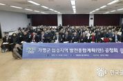 (한국글로벌뉴스 - 박소연 기자) 가평군과 경기도는 16일 오후 가평군청 대회의실에서 ‘경기도 접경지역 발전종합계획 변경(안)’에 가평군 신규사업 반영을 위한 주민 및 전문가 공청회를 공동으로 개최했다. 이번 공청회는 '접경지역 지원 특별법' 제5조 및 같은 법 시행령 제4조에 따른 공식 절차이다. 가평군이 올해 3월 접경지역으로 추가 지정됨에 따라 기존 ‘경기도 접경지역 발전종합계획(2011~2030)’에 가평군의 지역 특성과 여건을 반영한 신규사업을 반영하기 위해 마련됐다. 이날 공청회에서는 ‘가평군 접경지역 발전종합계획(안)’에 대한 설명과 함께 총 32개의 신규사업에 대해 주민과 전문가의 다양한 의견이 제시됐다. 주요 신규사업으로는 △가평 생태‧안보 문화지구 조성 △공공의료기관 건립 △상면 일반산업단지 조성 등 생태‧문화관광, 정주여건 개선, 산업기반 확충을 아우르는 전략사업들이 포함됐다. 6개 읍면 주민, 관계기관 전문가 등 90여 명이 참석한 가운데 참석자들은 사업의 단계적 추진과 재원 확보 방안, 주민 체감도를 높일 수 있는 사업 운영 방향 등에 대해 공감하며 다양한 의견을 제시했다.