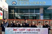 (한국글로벌뉴스 - 박소연 기자) 지난 22일, 안성종합사회복지관은 ㈜케이씨와 안성시자원봉사센터가 함께한 ‘따뜻한 겨울나기 지원사업’을 통해 2천만 원 상당의 전기요(‘순 코튼 안심 카본매트’)를 후원받아 관내 유관 기관에 전달했다고 밝혔다. 이번 후원은 겨울철 난방에 어려움을 겪는 취약계층의 생활환경을 개선하고, 보다 안전하고 따뜻한 겨울을 보낼 수 있도록 지원하고자 마련됐다. 전달된 전기요는 안성시정신건강복지센터, 안성3동 행정복지센터 등 총 11개 기관을 통해 도움이 필요한 대상자들에게 전달됐다. ㈜케이씨는 지역사회와 상생을 위하여 지속적인 사회공헌 활동을 이어가고 있으며, 이번 후원 역시 취약계층을 위한 실질적인 지원을 통해 기업의 사회적 책임을 실천하고자 하는 뜻에서 진행됐다. 또한 안성시자원봉사센터는 지역 자원을 연계하고 후원이 필요한 곳에 효율적으로 전달될 수 있도록 협력하며 뜻깊은 자리를 마련했다. 고상걸·권홍빈 ㈜케이씨 대표는 “추운 겨울을 보내는 이웃들에게 조금이라도 도움이 되기를 바라는 마음으로 후원을 준비했다”며 “앞으로도 지역사회와 함께 따뜻한 나눔을 이어갈 수 있도록 계속 노력하겠다”고