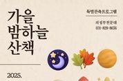 (한국글로벌뉴스 - 박소연 기자) 의정부과학도서관은 10월 30일부터 11월 1일까지 의정부천문대에서 특별 관측 행사 ‘가을 밤하늘 산책’을 운영한다. 이번 행사는 깊어가는 가을밤, 시민들이 천체 관측을 통해 자연과 과학의 아름다움을 체험할 수 있도록 마련했다. 행사는 오후 7시부터 9시까지 진행된다. 전문 해설과 함께 실제 관측을 체험할 수 있는 참여형 행사로 ▲달과 토성 관측 ▲천문우주 영상물 시청 ▲전시실 체험 ▲소원카드 달기 등으로 구성된다. 참여자들은 달과 토성의 고리를 직접 관측하고, 소원카드에 각자의 바람을 담아 별빛 아래에 걸어보는 체험도 즐길 수 있다. 행사는 과학문화에 대한 시민의 관심을 높이고 가족 단위의 참여를 확대하기 위해 무료로 진행한다. 별도의 사전 접수 없이 행사 당일 현장에서 참여할 수 있다. 과학도서관 관계자는 “의정부천문대가 과학과 자연이 어우러진 문화공간으로 자리잡을 수 있도록 앞으로도 다양한 프로그램을 운영할 것”이라며 “이번 특별 관측을 통해 가족과 함께 밤하늘을 바라보며 뜻깊은 시간을 보내길 바란다”고 말했다.