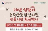(한국글로벌뉴스 - 박경희 기자) ■ 2026년 설맞이 농축산물 할인지원 전통시장 환급행사 - 2026.2.10.(화)~2.14.(토) (5일간) - 환급소 운영시간 9:00~17:00 ※ 운영시간은 시장상황에 따라 변경될 수 있음 · 행사기간 내, 1인 2만 원 한도 행사기간 내 구매 영수증 금액 합산 가능/ 추가, 중복 수령 불가 - 3만 4000원 이상 구매 시 온누리 상품권 1만 원 환급 - 6만 7000원 이상 구매 시 온누리 상품권 2만 원 환급 예산 소진 또는 부정환급 적발 시 조기종료 ■ 환급절차 ① 국내산 신선 농축산물 구매 후 영수증 수령 ② 점포주가 농축산물 환급 앱에 판매 정보 입력 ③ 구매 영수증, 본인확인 수단(휴대전화) 지참 후, 환급소 방문 ④ 구매한 영수증 및 본인확인 후 상품권 수령 ■ 행사대상 참여 점포에서 국산 신선 농축산물 구매한 고객 ■ 불가항목 · 본인확인 수단(휴대전화) 미지참 시 환급불가 · 국산 신선 농축산물이 아닌 품목 · 행사 미등록 점포 구매 영수증 · 재발행 영수증, 간이 영수증 환급 · 행사 기간 내 구매가 아닌 영수증 · 구매 고객이 아닌 대