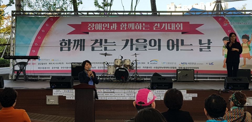 경기도의회 안혜영 부의장(더불어민주당, 수원11)은 지난 2일(화) 문화의 달 10월을 맞이하여 광교호수공원에서 진행된 장애인과 함께하는 걷기대회 “함께 걷는 가을의 어느 날” 행사에 참석했다. 이번 걷기대회는 장애인 200명과 인솔자 250명, 학생 50명, 개인 및 단체봉사 100명 등 600여명이 함께 참여하여 지역주민들의 장애인식 개선을 통한 활기찬 사회분위기를 조성하기 위해 수원시장애인종합복지관(관장 최영화)에서 개최했다.