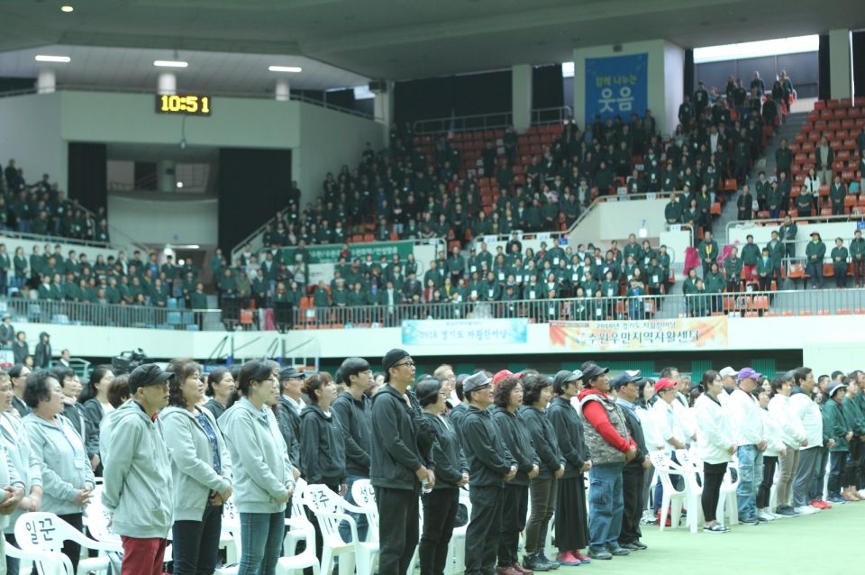 경기도는 5일 성남종합운동장 실내체육관에서 도내 33개 지역자활센터의 자활사업 참여주민과 종사자, 183개 자활기업 참여자 등 2,300여명이 함께한 가운데 2018년 경기도 자활한마당을 개최했다.