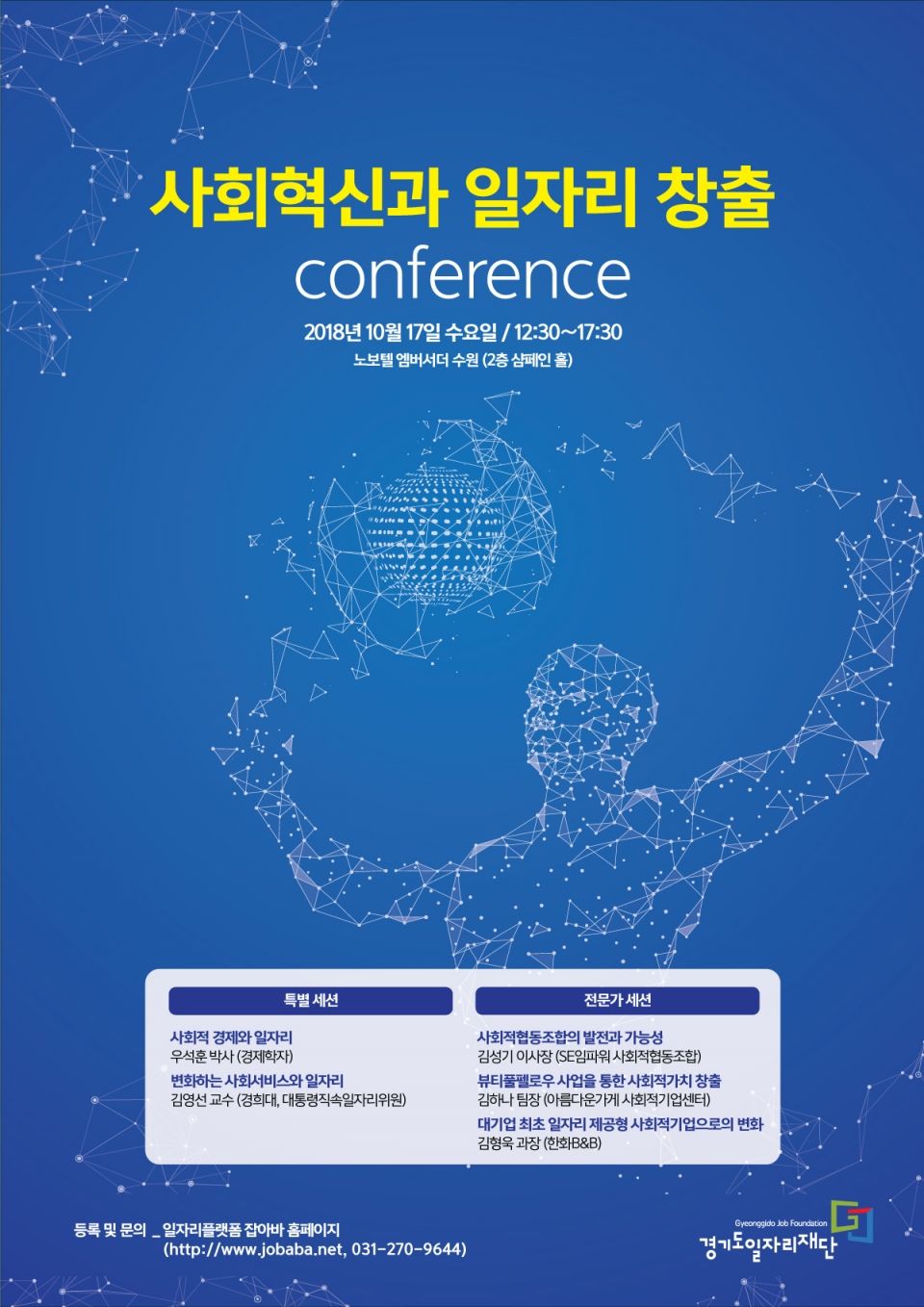 경기도일자리재단은 17일 수원 노보텔 엠베서더 2층 샴페인홀에서 ‘사회혁신과 일자리 창출’ 컨퍼런스를 개최한다.