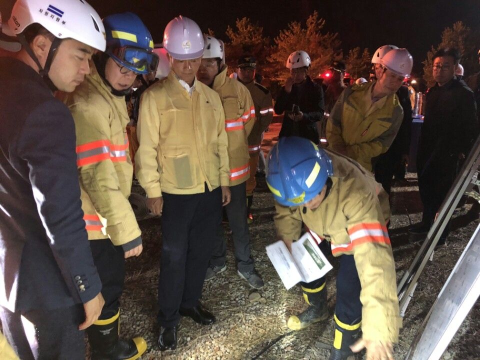 언제 쯤 진화가 되는지를 묻는 이 지사의 질문에 이 본부장은 “현재 연소저지와 기름을 빼는 드레인 작업을 동시에 하고 있다”면서 “전 소방력을 동원해 최대한 안전하고 신속하게 진화작업에 임하겠다”라고 답했다.