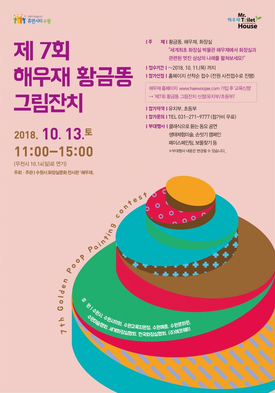 수원시 화장실문화 전시관 ‘해우재’가 13일 오전 11시 해우재 잔디마당과 야외공원에서 어린이를 대상으로 ‘제7회 황금똥 그림잔치’를 연다.