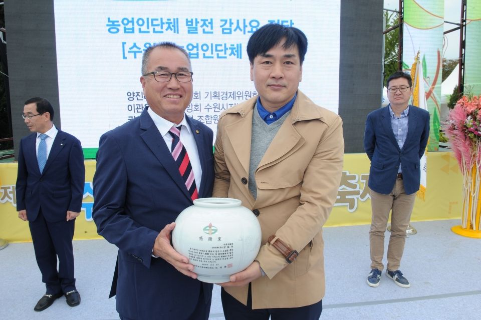 수원시의회 양진하 의원(더불어민주당, 매탄1·2·3·4동)은 지난 9일, 당수동 시민농장에서 열린 제28회 수원시 그린농업축제에서 농촌지도자회장 훈격의 감사요(도자기)를 수상했다.