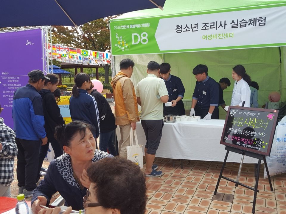 안산시 평생학습원(원장 여환규)이 9일 안산문화광장 일대에서 진행한 ‘2018 안산시평생학습한마당’ 행사에 여성비전센터 대표 강좌인 ‘청소년 조리사’가 참가해 무료 시식 행사와 강좌 홍보를 진행했다.