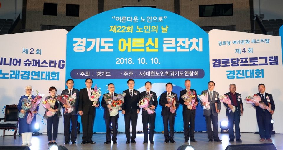 경기도는 10일 이재명 경기도지사와 이종한 대한노인회경기도연합회장을 비롯해 송한준 경기도의회 의장, 시·군 노인회 지회장과 도내 어르신 등 1,500여명이 참석한 가운데 수원실내체육관에서 제22회 노인의 날 기념 행사를 개최했다.
