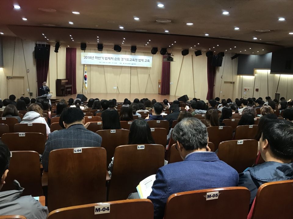 경기도교육청(교육감 이재정)은 11일(목)부터 12일(금)까지 법제처와 공동 주관으로 경기도교육복지종합센터에서 2018년 하반기 경기도교육청 법제교육을 개최한다.