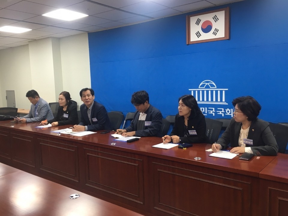 경기도의회 보건복지위원회 이영봉(민주당,의정부2), 박태희(민주당,양주1), 조성환(민주당,파주1), 김영애(민주당,평택3), 권정선(민주당,부천5), 지석환(민주당,용인1), 이애형(자유한국당,비례)의원은 10일 오후 국회의원회관 제1간담회장에서 사단법인 새누리장애인부모연대 의정부시지부(회장 이미연), 사단법인 전국장애인부모연대 경기지부(지부장 김수연) 부회장단 등 6명이 참석한 가운데 발달장애인 관련 정책에 대하여 논의하는 자리를 가졌다.