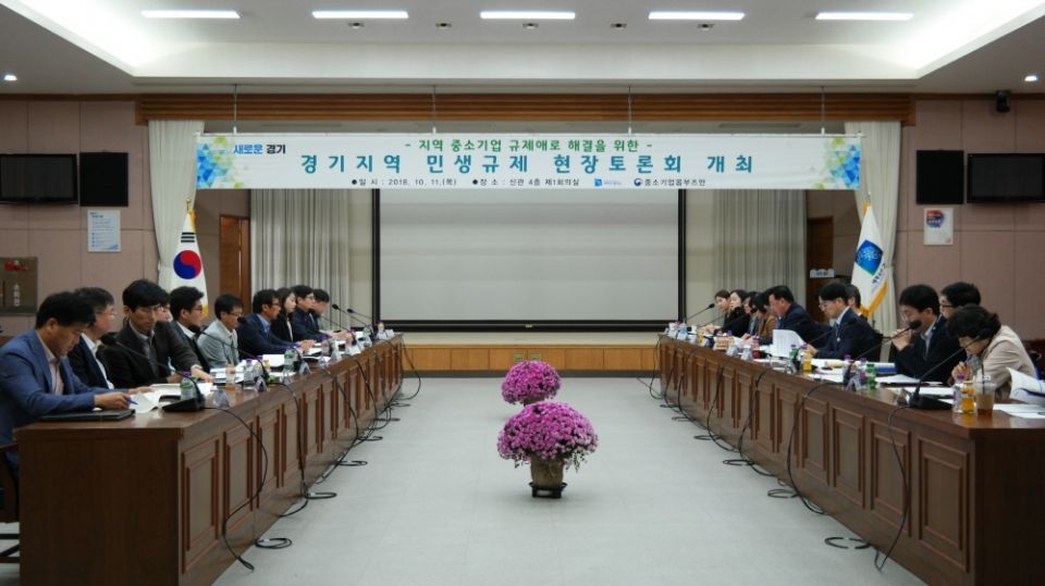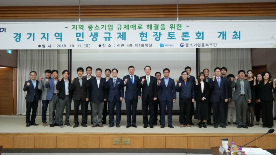 경기도는 중소기업 옴부즈만과 11일 오후 경기도청에서 김희겸 경기도 행정1부지사와 화성시, 이천시 등 도내 7개 시군 공무원, 기업인 3명 등 25명이 함께한 가운데 ‘경기지역 민생규제 현장토론회’를 공동개최했다.